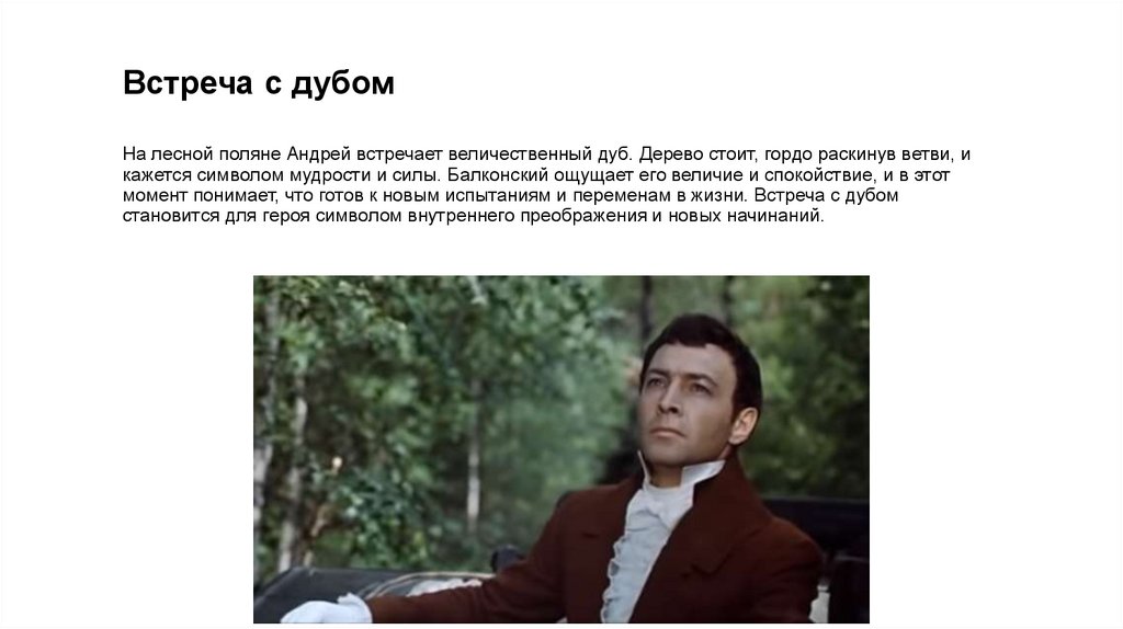 момент понимает, что готов к новым испытаниям и переменам в жизни. Встреча с дубом