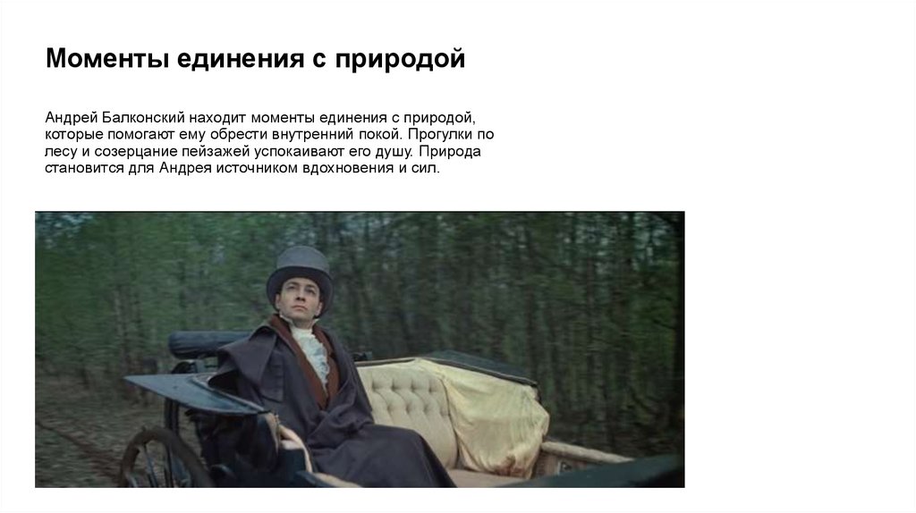 Моменты единения с природойАндрей Балконский находит моменты единения с природой,
