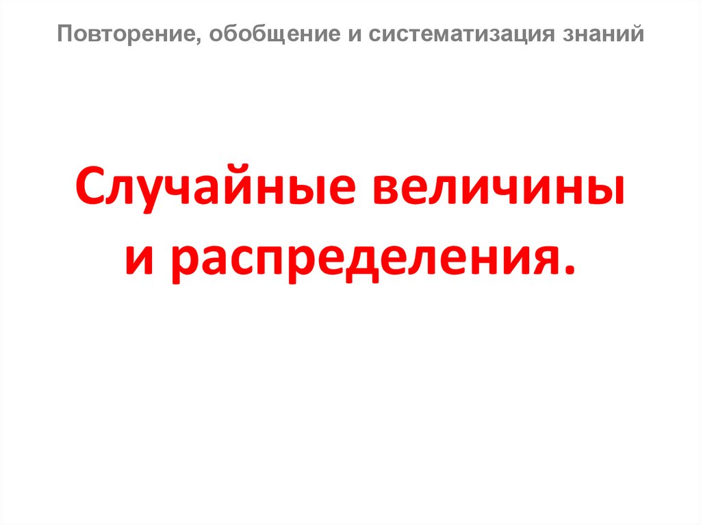 Повторение, обобщение и систематизация знанийСлучайные величины
