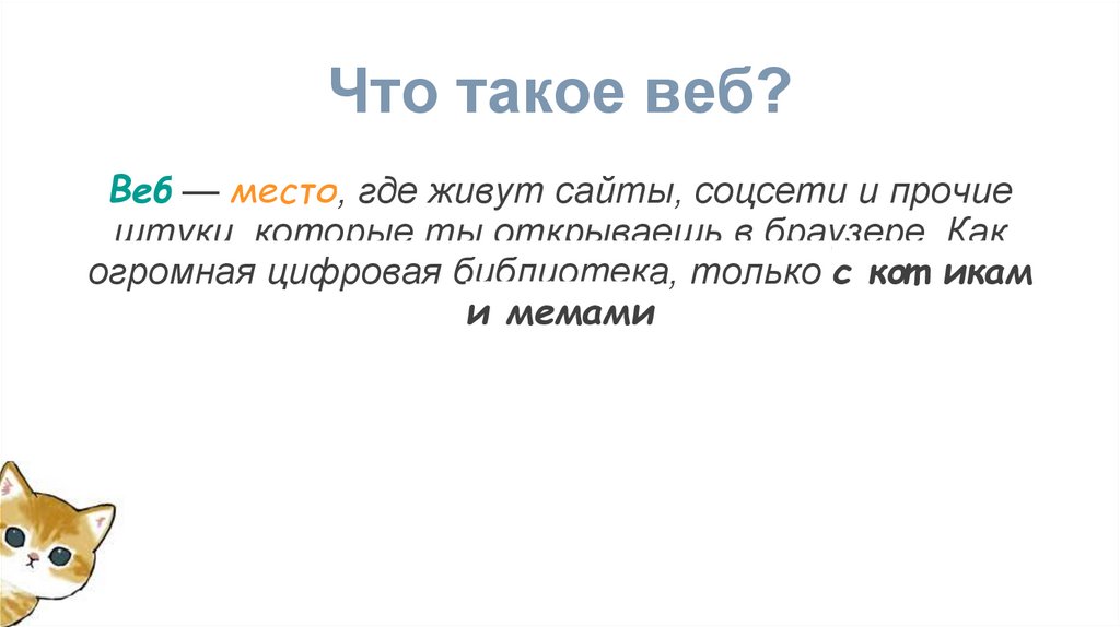 Что такое веб?Веб — место, где живут сайты, соцсети и прочие