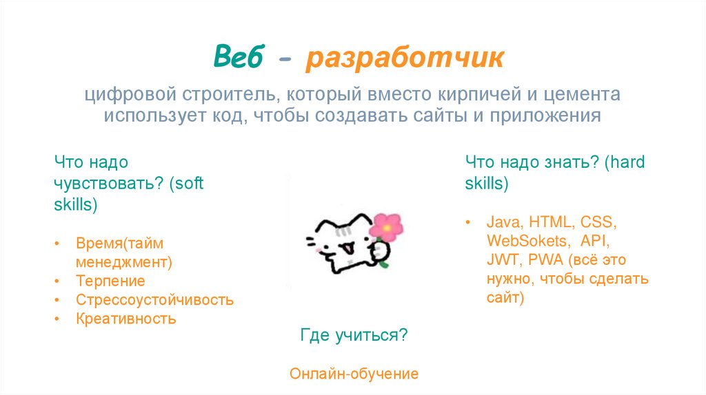 Веб - разработчикцифровой строитель, который вместо кирпичей и цемента