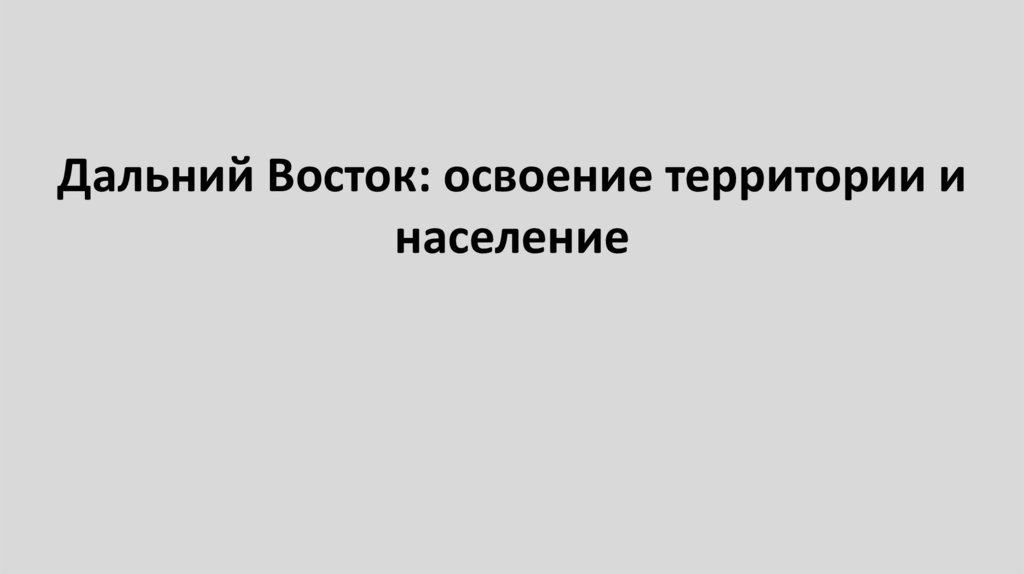 1. Дальний Восток: освоение территории и население
