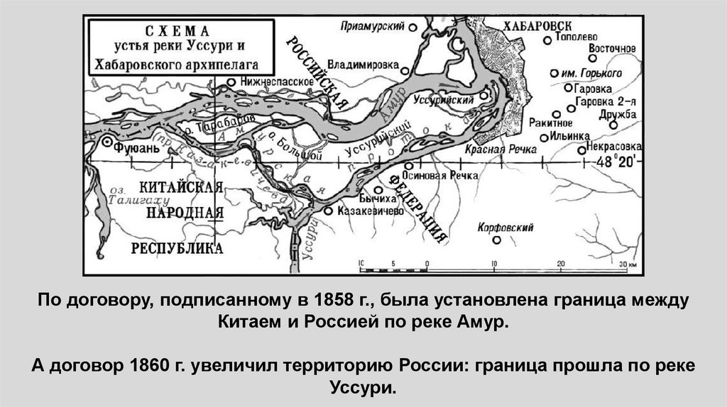 А договор 1860 г. увеличил территорию России: граница прошла по реке