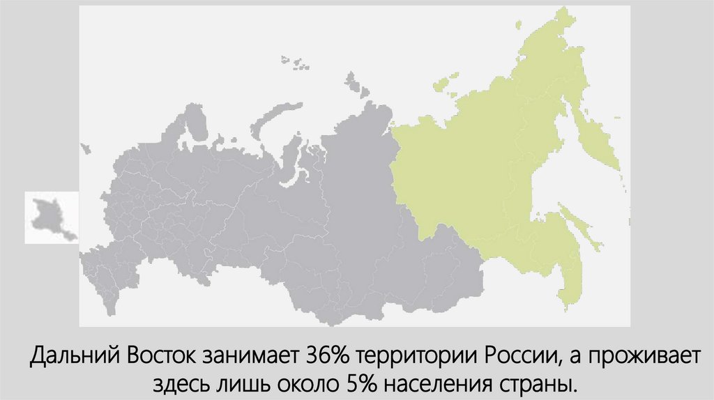 Дальний Восток занимает 36% территории России, а проживаетздесь лишь около 5% населения страны.