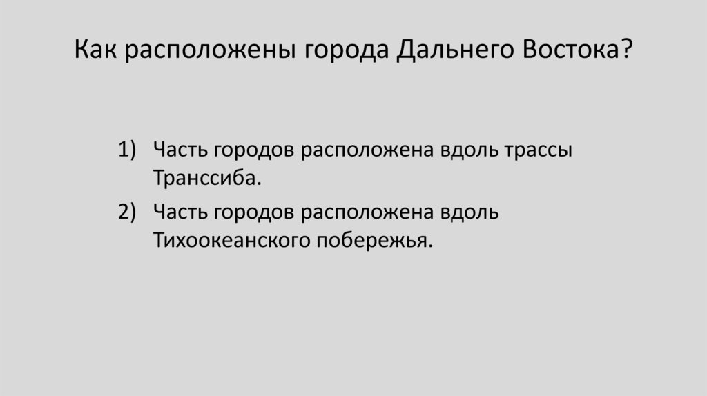 29. Как расположены города Дальнего Востока?