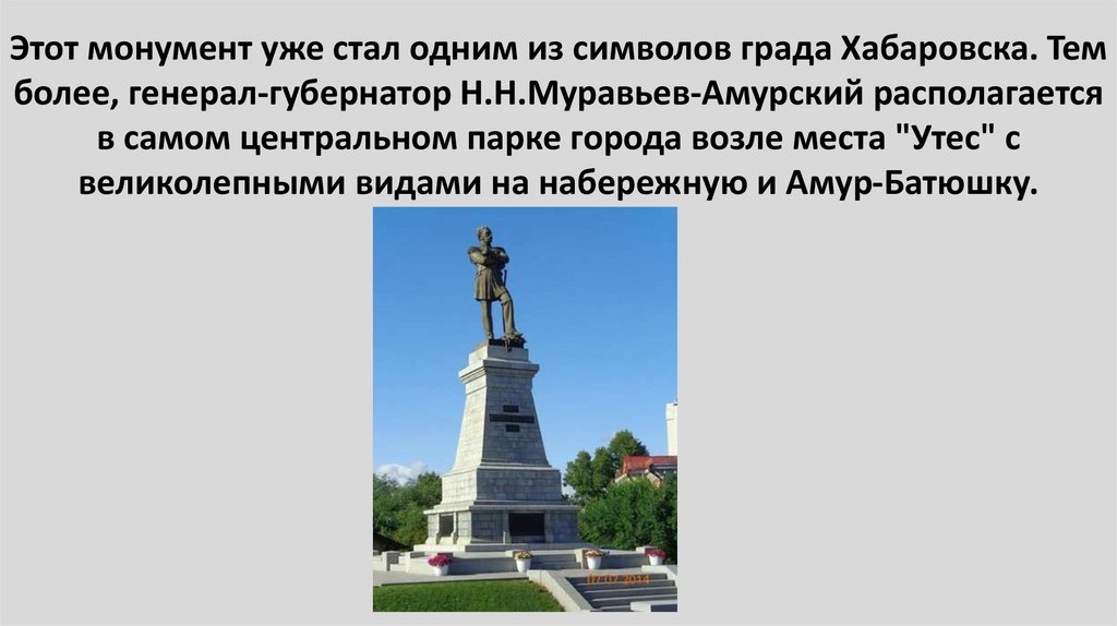 47. Этот монумент уже стал одним из символов града Хабаровска. Тем более, генерал-губернатор Н.Н.Муравьев-Амурский располагается в