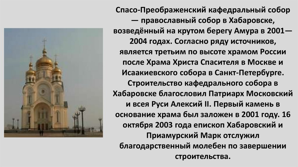49. Спасо-Преображенский кафедральный собор — православный собор в Хабаровске, возведённый на крутом берегу Амура в 2001—2004