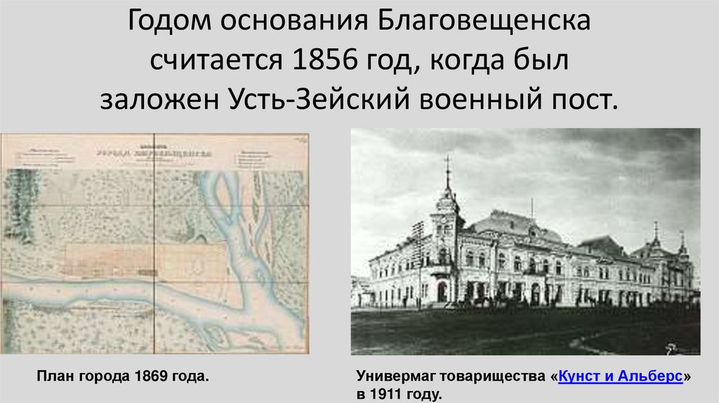 • Годом основания Благовещенска считается 1856 год, когда