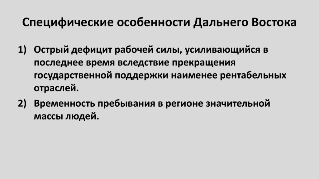 59. Специфические особенности Дальнего Востока