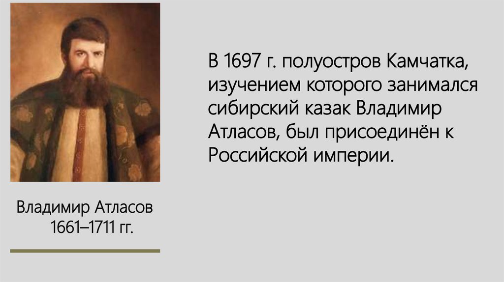 В 1697 г. полуостров Камчатка,изучением которого занимался