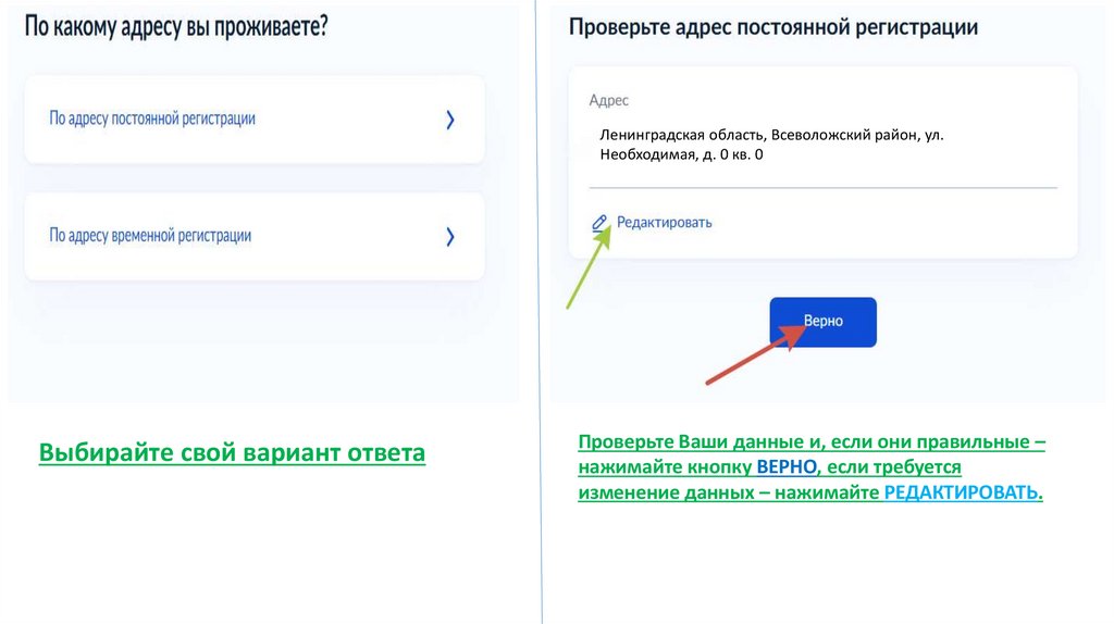 Проверьте Ваши данные и, если они правильные – нажимайте кнопку ВЕРНО,если требуется изменение данных – нажимайте РЕДАКТИРОВАТЬ.