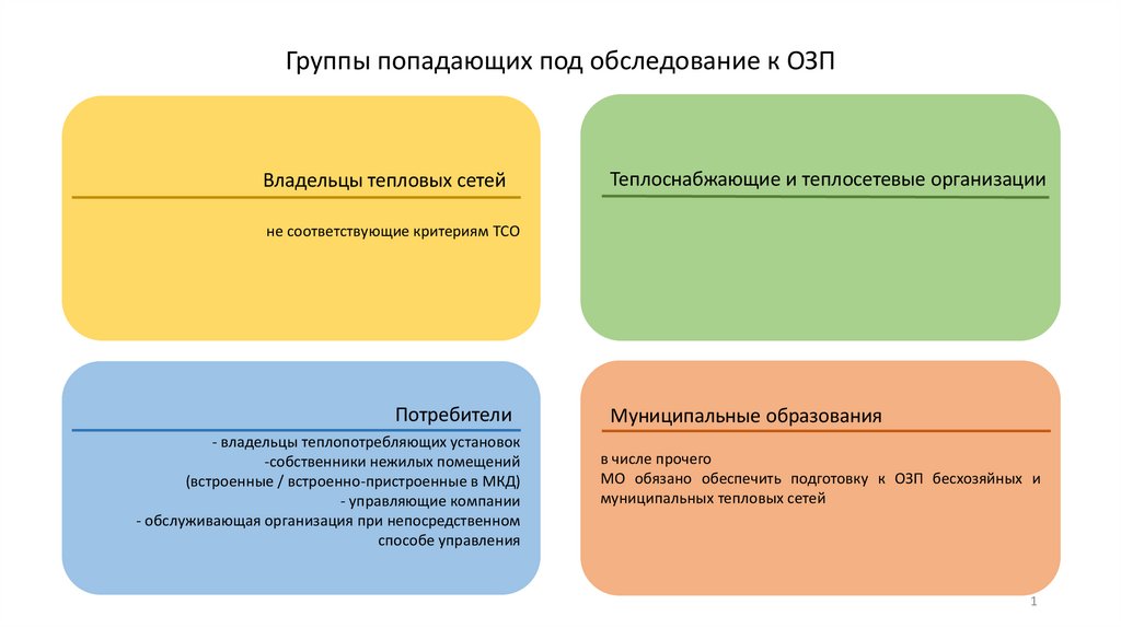 Группы попадающих под обследование к ОЗПВладельцы тепловых сетей