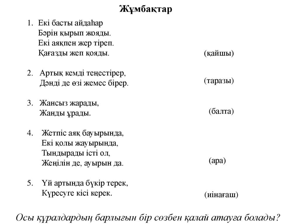 Осы құралдардың барлығын бір сөзбен қалай атауға болады?