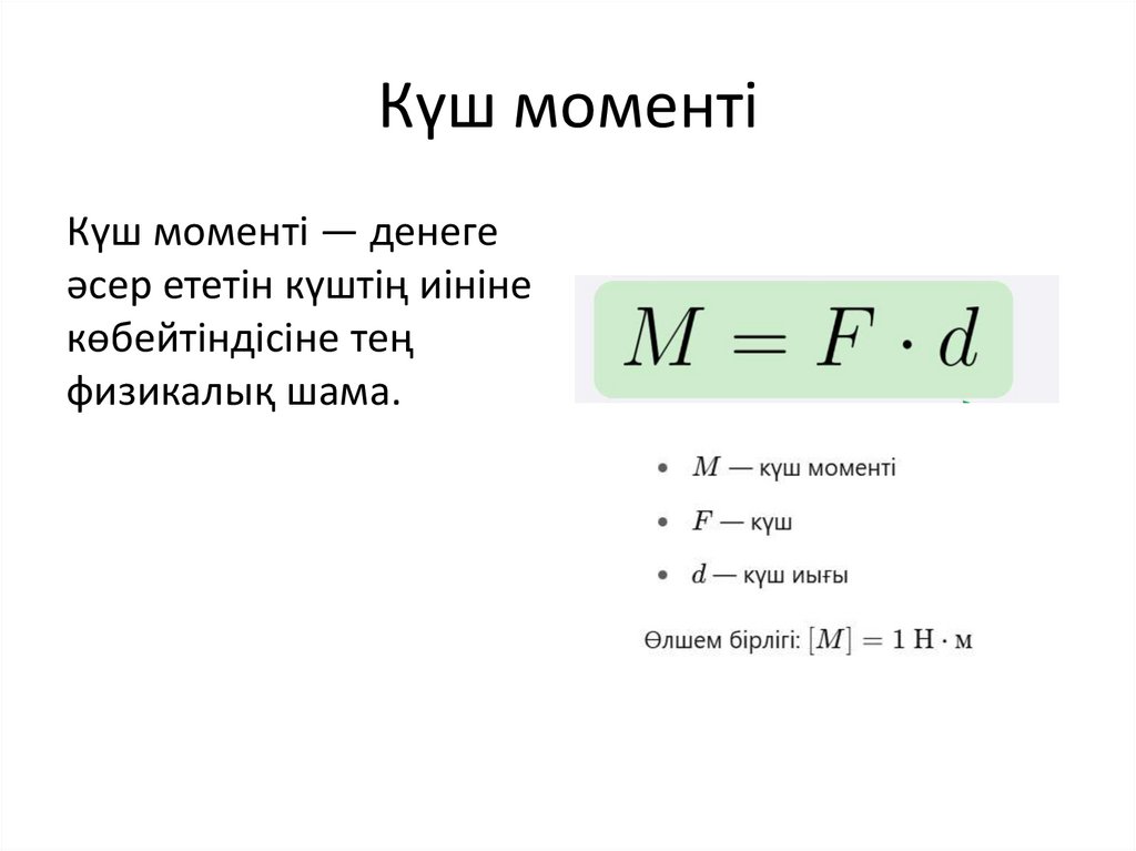 Күш моменті. Жай механизмдер. Күш моментінің алтын ережесі
