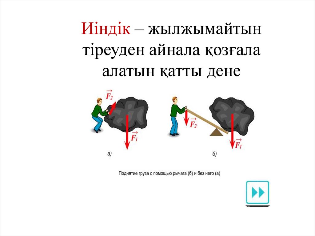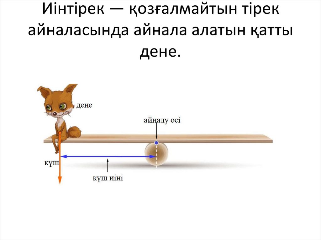 16. Иінтірек — қозғалмайтын тірек айналасында айнала алатын қатты дене.