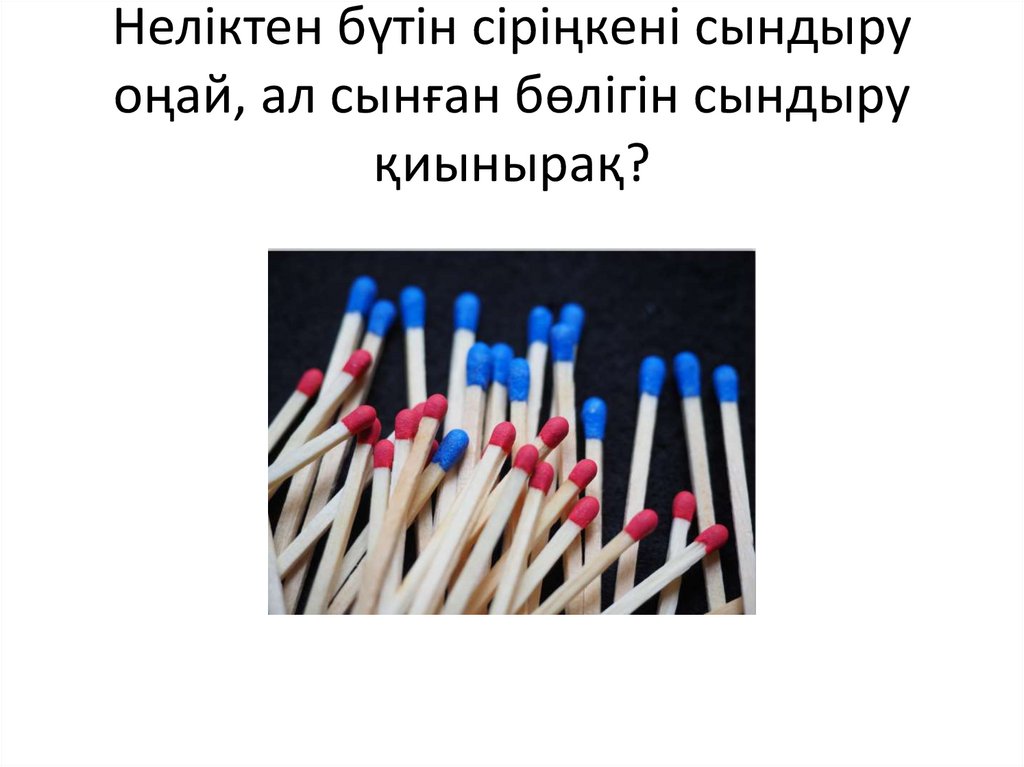 20. Неліктен бүтін сіріңкені сындыру оңай, ал сынған бөлігін сындыру қиынырақ?