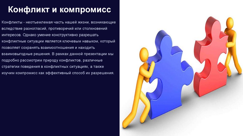 Конфликт и компромиссКонфликты - неотъемлемая часть нашей жизни, возникающие