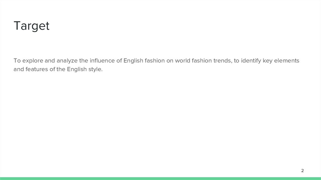 TargetTo explore and analyze the influence of English fashion on world fashion trends, to identify key elements