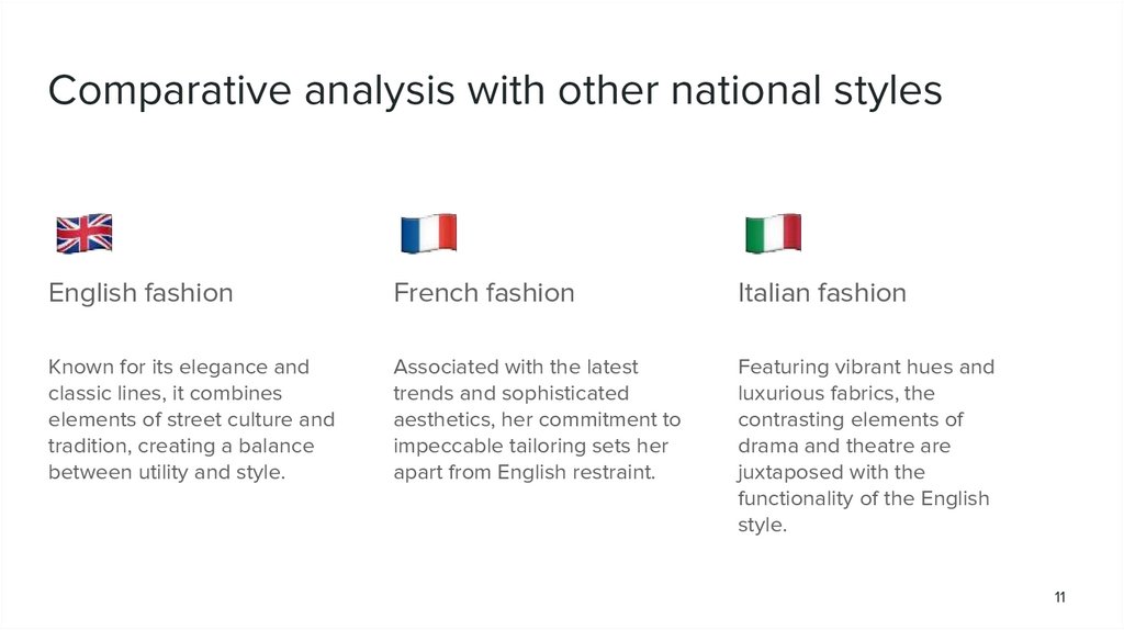 Comparative analysis with other national stylesEnglish fashion