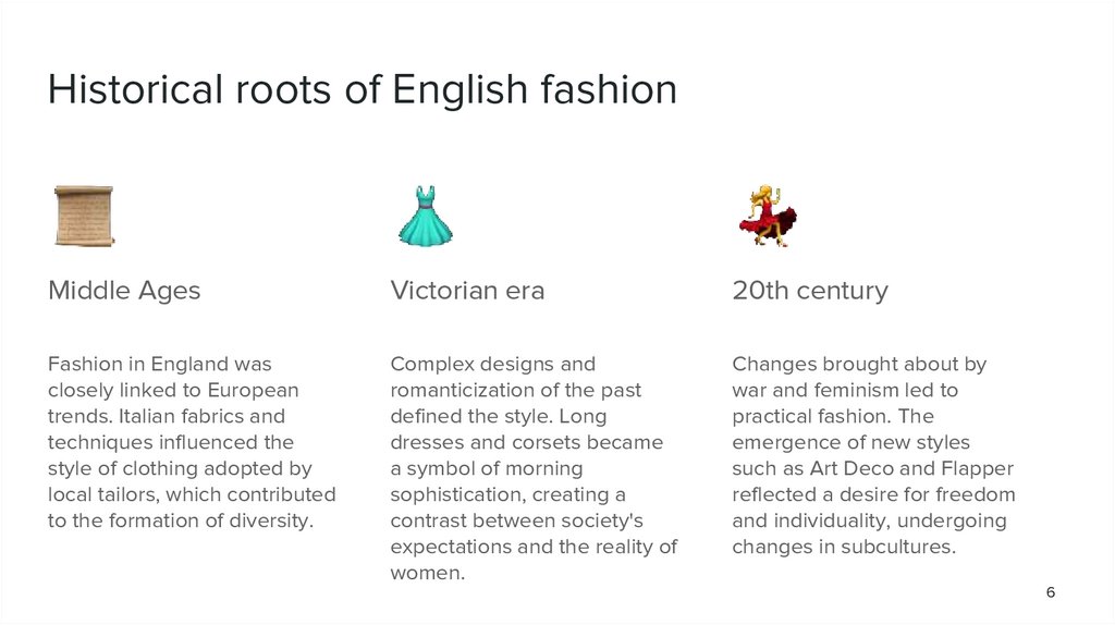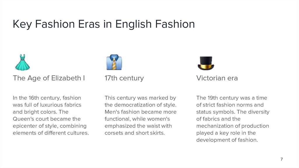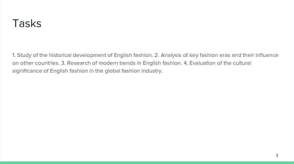 Tasks1. Study of the historical development of English fashion. 2. Analysis of key fashion eras and their influence