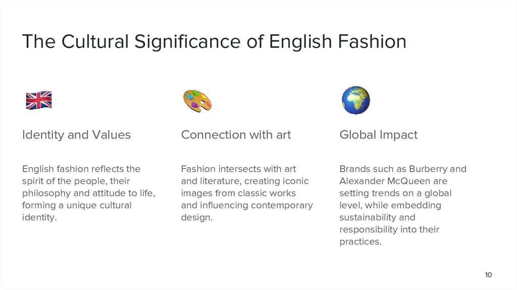 on other countries. 3. Research of modern trends in English fashion. 4. Evaluation of the cultural