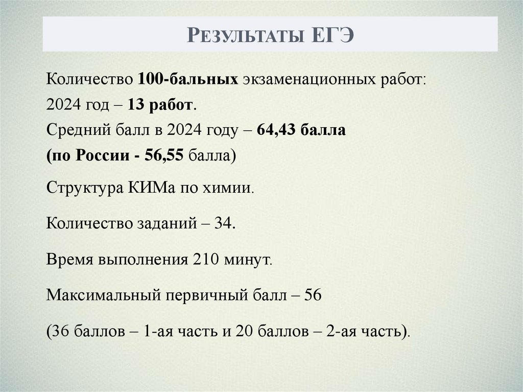 РЕЗУЛЬТАТЫ ЕГЭКоличество 100-бальных экзаменационных работ: