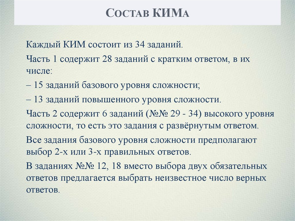 СОСТАВ КИМАКаждый КИМ состоит из 34 заданий.