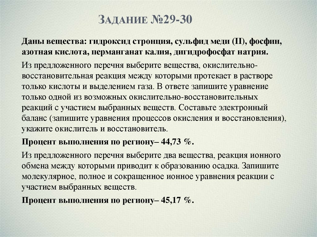 ЗАДАНИЕ №29-30Даны вещества: гидроксид стронция, сульфид меди (II), фосфин,