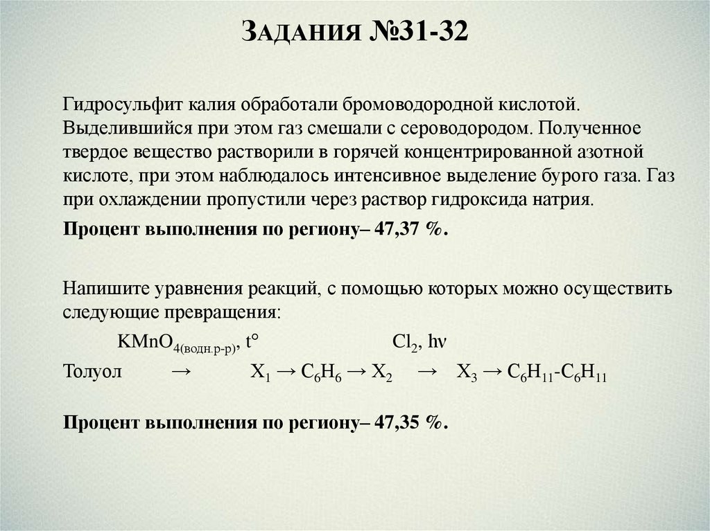 ЗАДАНИЯ №31-32Гидросульфит калия обработали бромоводородной кислотой.
