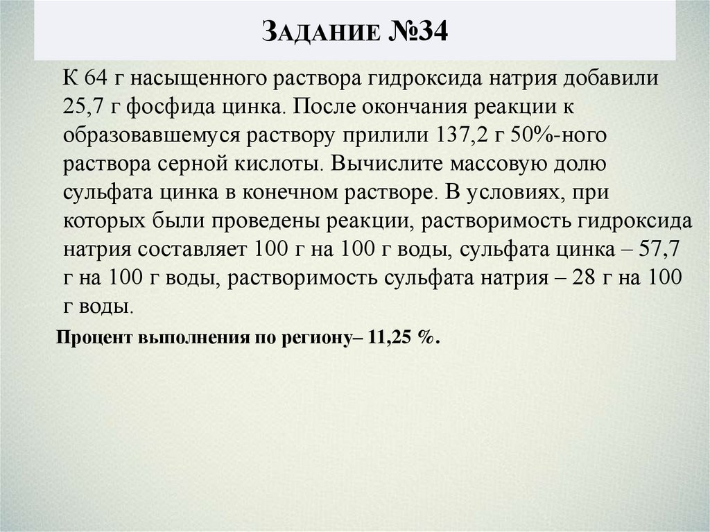 ЗАДАНИЕ №34К 64 г насыщенного раствора гидроксида натрия добавили