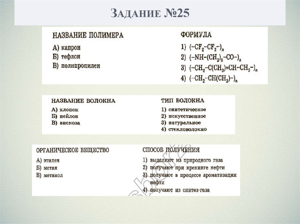 ЗАДАНИЕ №25Установите соответствие между мономером и полимером,