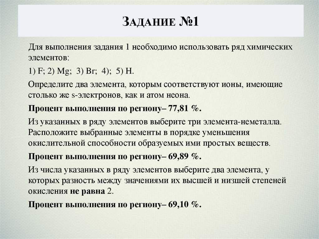 ЗАДАНИЕ №1Для выполнения задания 1 необходимо использовать ряд химических