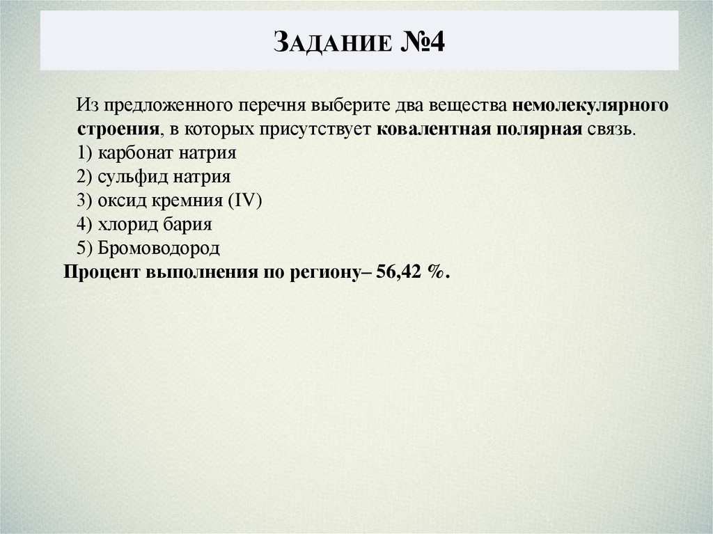 ЗАДАНИЕ №4Из предложенного перечня выберите два вещества немолекулярного