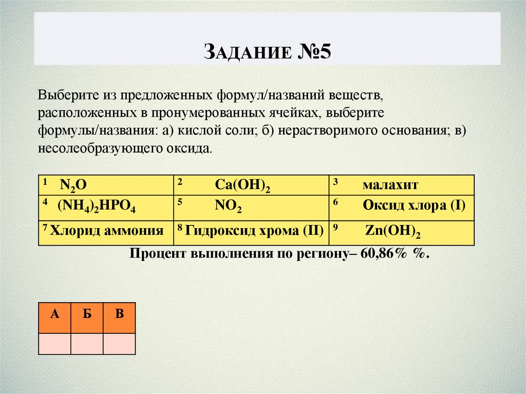 ЗАДАНИЕ №5Выберите из предложенных формул/названий веществ,