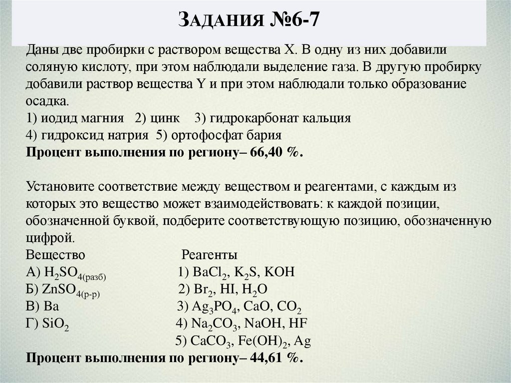 ЗАДАНИЯ №6-7Даны две пробирки с раствором вещества Х. В одну из них добавили