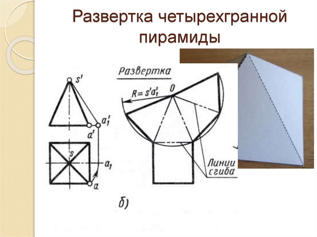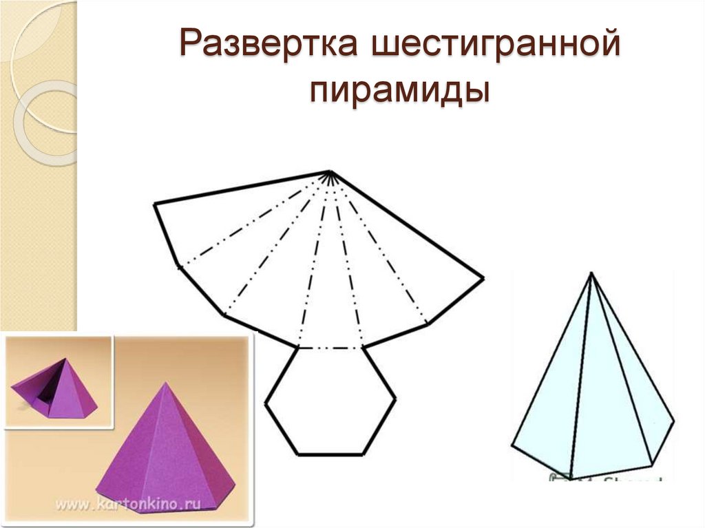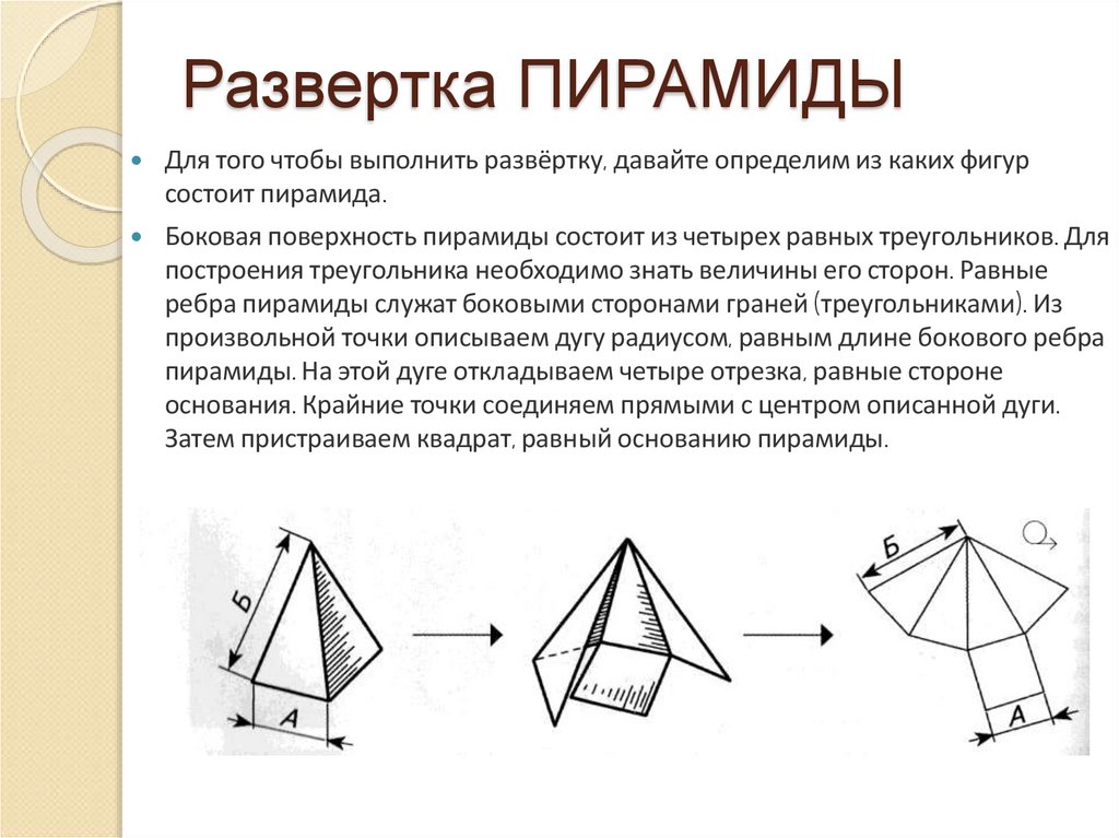 Для того чтобы выполнить развёртку, давайте определим из каких фигурсостоит пирамида.