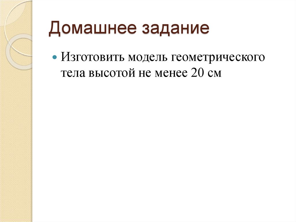 Изготовить модель геометрическоготела высотой не менее 20 см