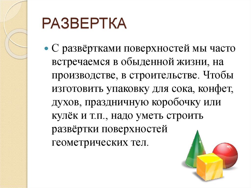 С развёртками поверхностей мы частовстречаемся в обыденной жизни, на
