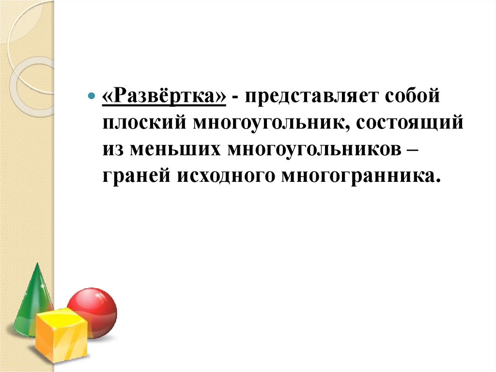 «Развёртка» - представляет собойплоский многоугольник, состоящий