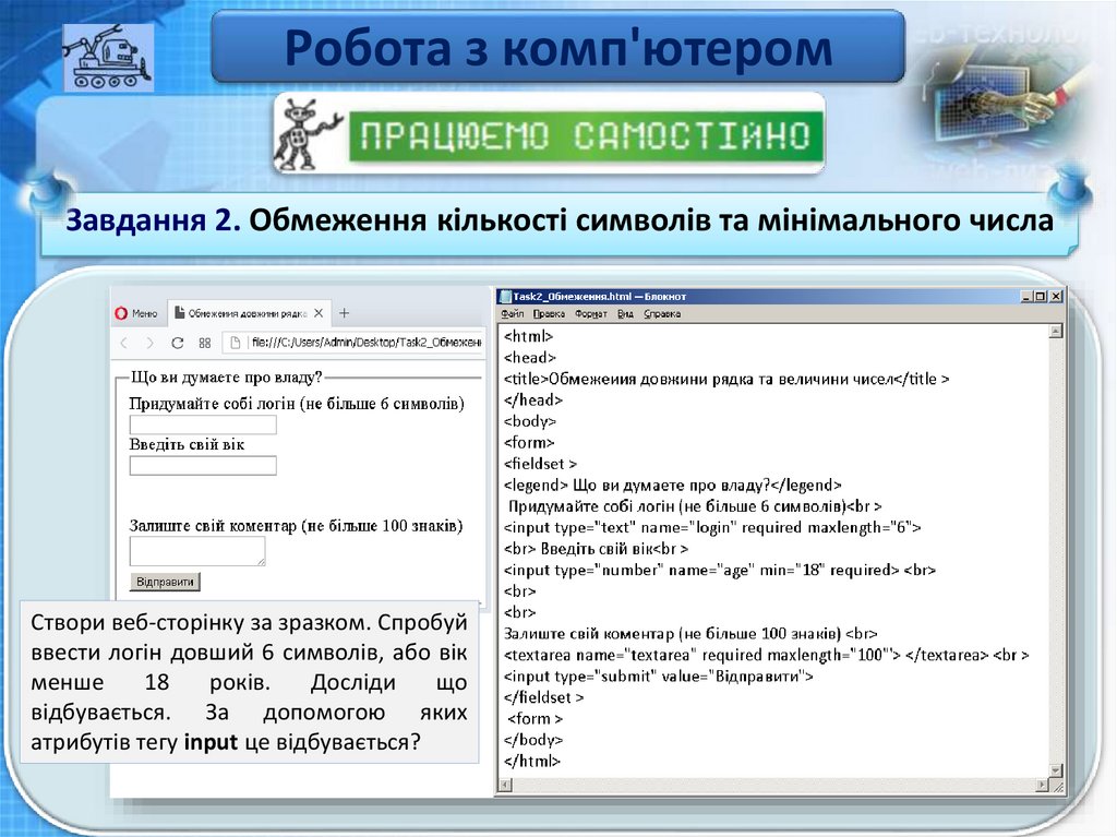 Завдання 2. Обмеження кількості символів та мінімального числаСтвори веб-сторінку за зразком. Спробуй