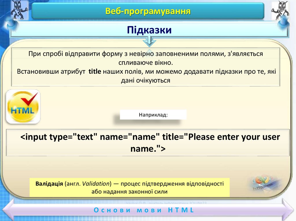 Встановивши атрибут title наших полів, ми можемо додавати підказки про те, які