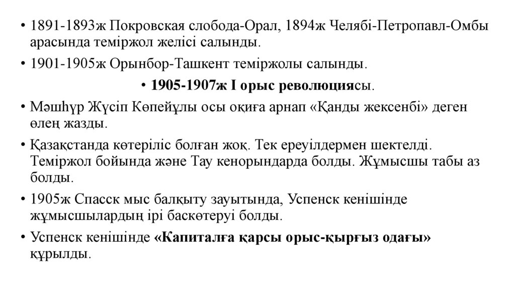 • 1891-1893ж Покровская слобода-Орал, 1894ж Челябі-Петропавл-Омбыарасында теміржол желісі салынды.