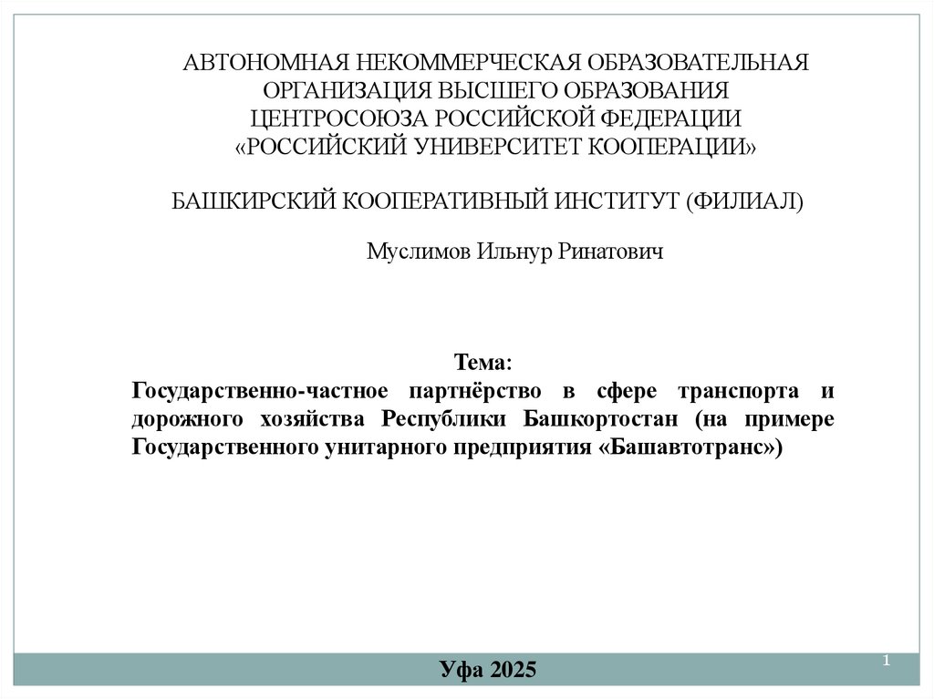 Государственно-частное партнёрство в сфере транспорта и дорожного хозяйства Республики Башкортостан