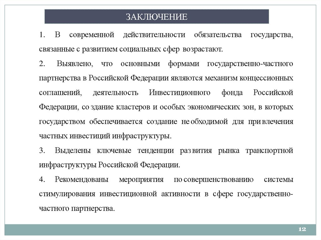 стимулирования инвестиционной активности в сфере государственночастного партнерства.