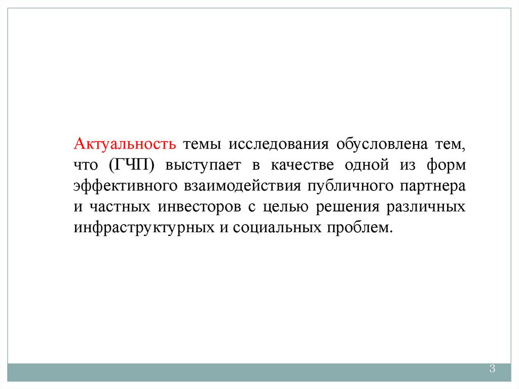 Актуальность темы исследования обусловлена тем,что (ГЧП) выступает в качестве одной из форм