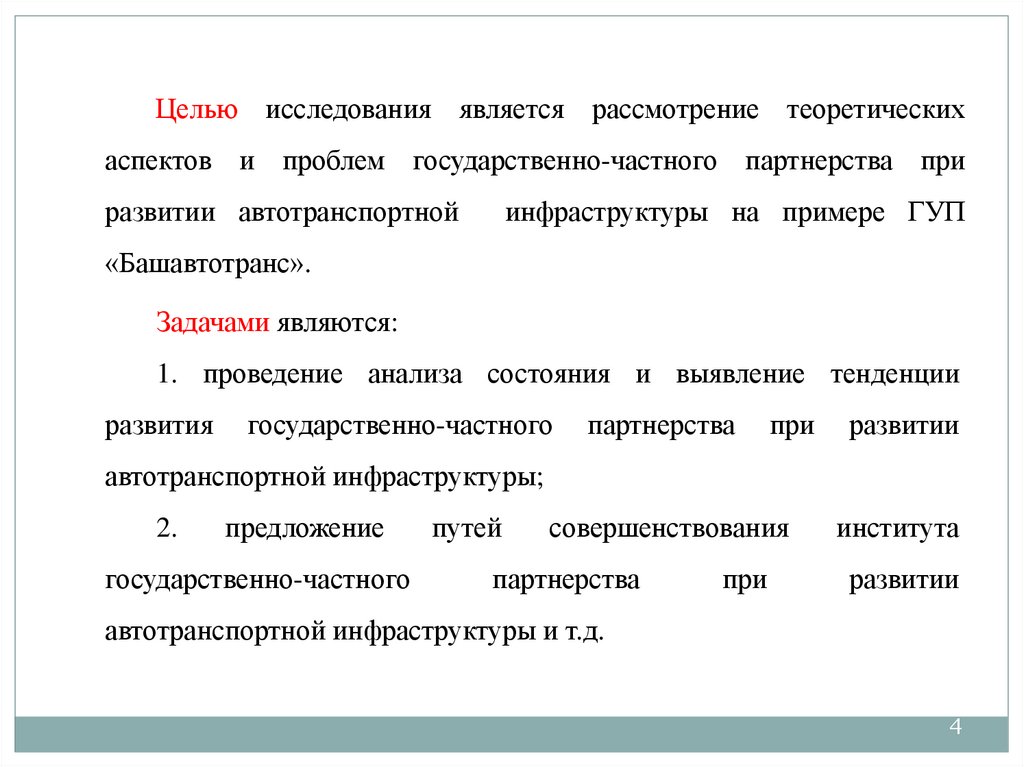 Целью исследования является рассмотрение теоретическихаспектов и проблем государственно-частного партнерства при