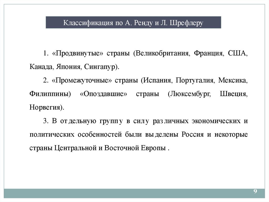 Классификация по А. Ренду и Л. Шрефлеру1. «Продвинутые» страны (Великобритания, Франция, США,