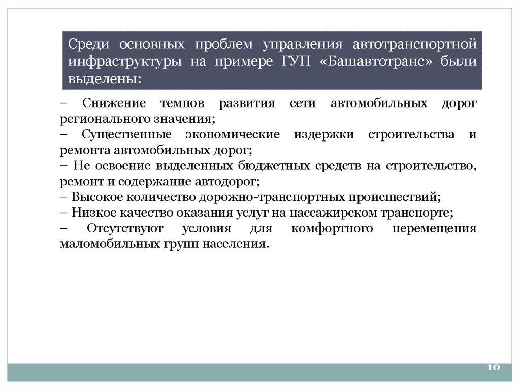 Среди основных проблем управления автотранспортнойинфраструктуры на примере ГУП «Башавтотранс» были