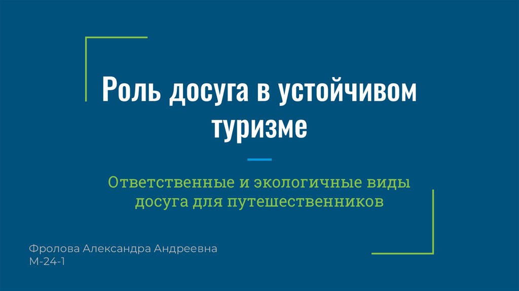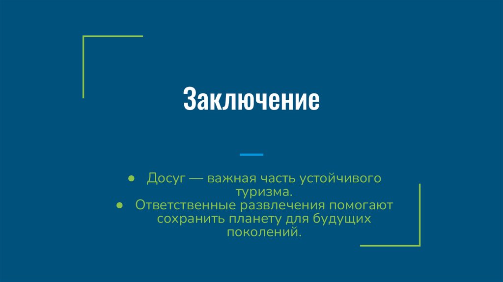 Цель презентации● Понять значение досуга в устойчивом туризме.