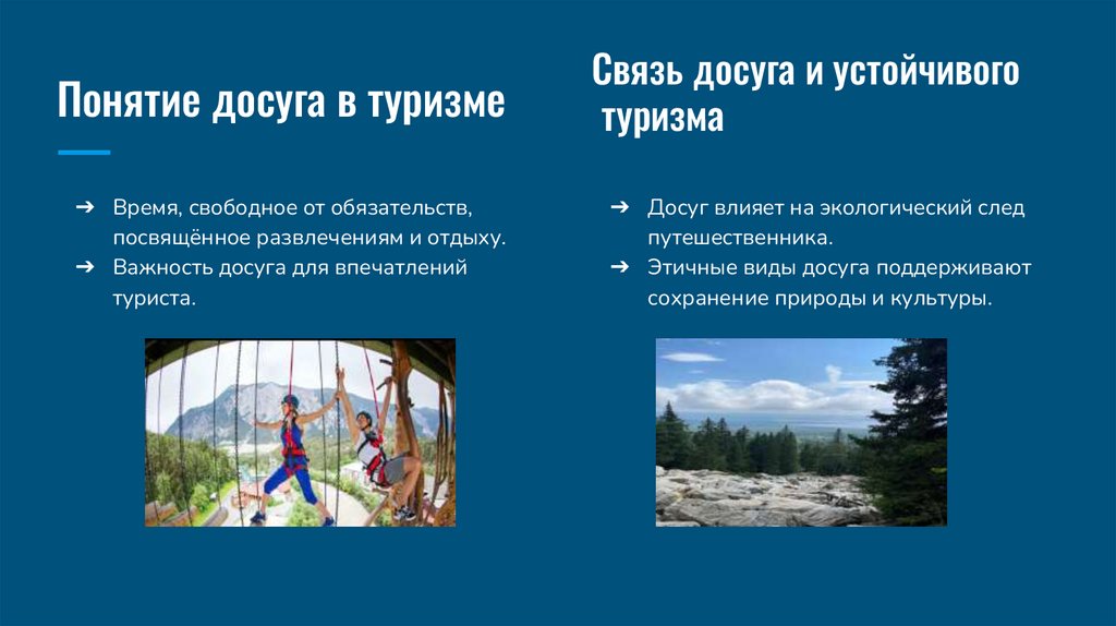 Понятие досуга в туризмеСвязь досуга и устойчивого